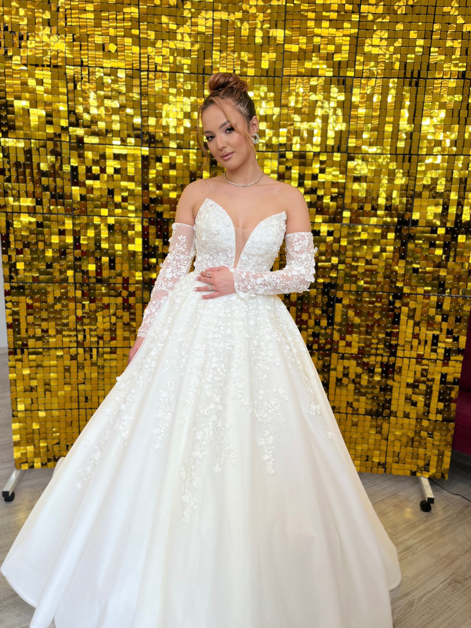 Rochia este ideală pentru nunți romantice, ceremonii elegante sau evenimente desfășurate în locații de poveste, fiind alegerea perfectă pentru miresele care își doresc o rochie atemporală, dar cu un detaliu statement. Rochia de mireasa printesa cu flori 3D este expresia pură a eleganței și romantismului, transformând fiecare apariție într-un moment memorabil.